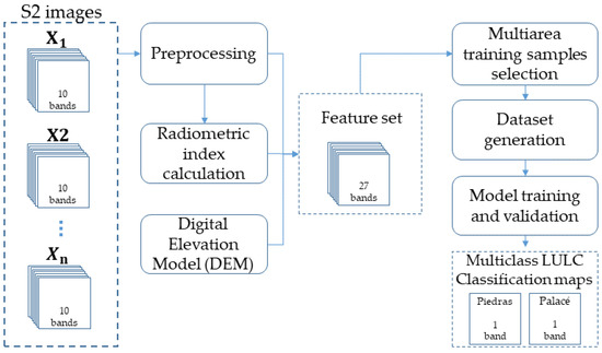 General block scheme of the proposed approach for LULC classification of Andean sub-basins in Colombia.