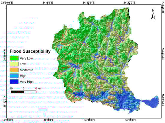 3.3. Mapping of Flash Flood Susceptibility Zonation Using AHP Model Outputs