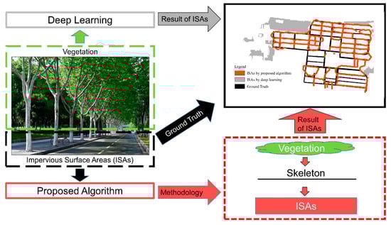 High-resolution remote sensing images can provide clear boundaries and abundant information for extracting fine urban impervious surfaces. It is hard to identify land cover in the shadow areas due to the low digital number (DN) value. Challenges still remain when detecting land cover types in shadow areas. LiDAR, as an important remote sensing data source, can capture ground surface elevation values and rich geometric features. Im et al. [59] proposed a method to quantify the impervious surface using artificial immune networks and decision/regression trees by integrating high spatial resolution WorldView-2 imagery with LiDAR data. Hodgson et al. [91] employed different algorithms, such as maximum likelihood, ISODATA, and rule-based algorithms, to extract impervious surfaces from the natural color aerial photography and LiDAR data. The involvement of LiDAR data significantly improves the estimation accuracy of impervious surfaces [92,93,94]. For shadow areas cast by vertical urban structures, a possible solution is to use the unmanned aerial vehicle (UAV) and street view to assist in extracting impervious surfaces.