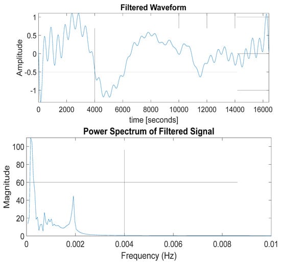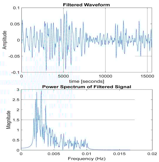 The results of the frequency spectrum and wavelet analysis show that TEC deviations were reactions to the dominant effect of gravity waves on the ionosphere in all cases (Figure 8, Figure 9, Figure 10 and Figure 11). The dominant gravity wave spectrum can be seen in Figure 8, showing the extracted gravity wave from the TEC deviations recorded for 8 August 2017.