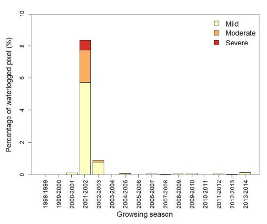 Waterlogging mapping for the 1998–1999 to 2013–2014 growing seasons.