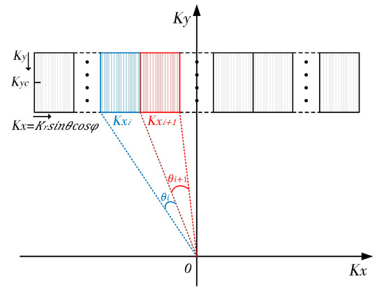 If the total number of stages is , for stage , the number of sub-apertures is represented by . For example, the number of sub-apertures in the initial stage, . , is used to represent the wavenumber domain data of stage and sub-aperture . Since the proposed algorithm adopts the global Cartesian coordinate system with the center of the full aperture as the origin, wavenumber domain splicing is adopted in this paper to achieve the fusion stage, and the process can be expressed as (18).