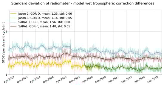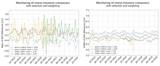 - Weighting the crossover distribution by latitudes, where weighting depends on the crossovers’ theoretical density. This also reduces the amplitude of the annual signal.