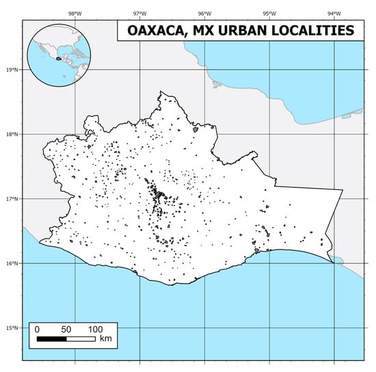 The State of Oaxaca, Mexico, with its 609 urban localities outlined. Source: INEGI.