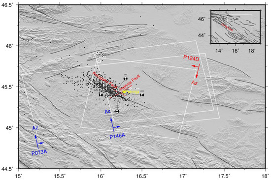 - Xiong, W.; Yu, P.; Chen, W.; Liu, G.; Zhao, B.; Nie, Z.; Qiao, X. The 2020 Mw 6.4 Petrinja earthquake: A dextral event with large coseismic slip highlights a complex fault system in northwestern Croatia. Geophys. J. Int. 2022, 228, 1935–1945. [Google Scholar] [CrossRef]