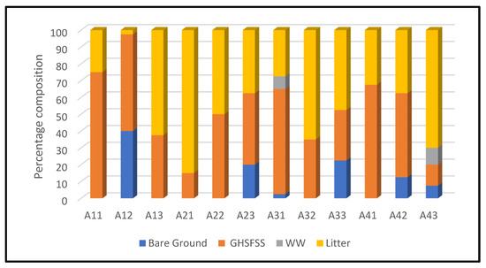 Graphical representation of the field data compositional variability within ‘A’ compartment quadrats.