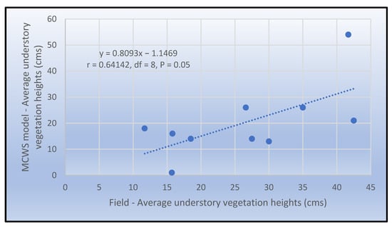 Statistically, the field data and DSM(Un) results showed moderate support for an association between the two sets of values with a Pearson’s correlation coefficient (r) of 0.64, degrees of freedom = 8, p-value = 0.005 (Figure 12).