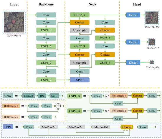 In this research, we developed the YOLOv5-PWD model by building on the YOLOv5m algorithm [40], which is the fifth iteration of the YOLO series [30,41]. Compared to proposal-based object detection models [27,28,29], the YOLO series algorithms are ideal for quickly identifying trees infected by PWD, as they offer fast processing times and cost-effectiveness.