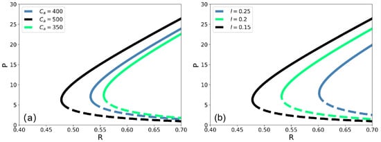 Sensitive analysis of different factors. (a) is for CO and (b) is for land use rate. Solid line is the stable state and dotted line is the unstable state. There exists one bifurcation when the system approaches a certain value under different climate conditions.