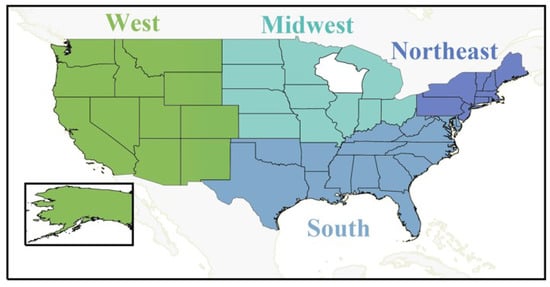 Regional separation for analysis of America. American dryland areas mainly locate in West, Midwest and South.