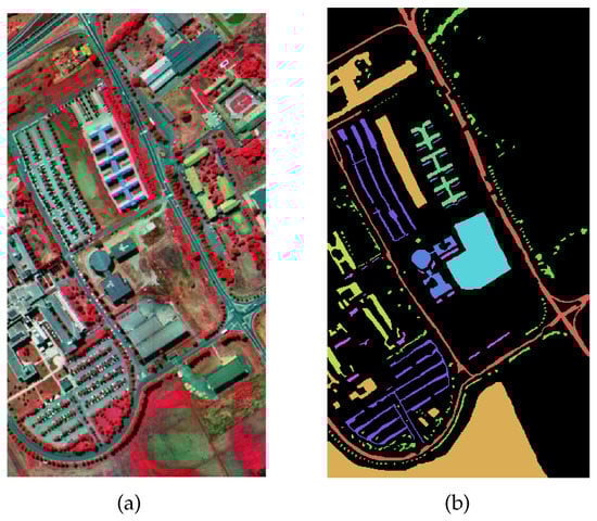 Visualization of PU Datasets. (a) False-color map. (b) Ground-truth map.