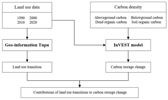 Global warming is becoming increasingly serious, which has threatened sustainable development and attracted worldwide attention [1,2]. Massive carbon emissions and human-induced land use change are considered two dominant driving forces of climate warming [3,4]. Carbon storage, as an important indicator of ecosystem function, is vital to the global carbon cycle and climate regulation [5,6]. Increasing carbon storage can effectively reduce the amount of CO2 in the atmosphere, which is one of the most important ways to mitigate climate warming [7]. Since China has proposed the goal of carbon neutrality, methods to reduce carbon emissions and increase carbon storage in the ecosystem have become essential issues [8,9,10]. Effective evaluation of carbon storage is of great significance for climate change adaptation and sustainable development [11]. Moreover, it can also provide useful references for formulation and optimization of land use policies [12,13].