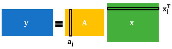 In OMP, Equation (1) is regarded as the following optimization problem; the solution is obtained using a greedy method.