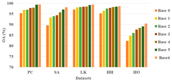 The OAs of various units in the designed approach for five datasets.