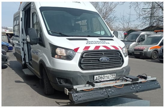 The arrangement of the radar antenna array on the road laboratory vehicle of the Russian Road Research Institute.