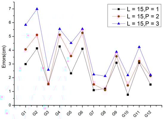 Figure 8 presents a line chart depicting the relationship between the length of training samples and the average prediction error. The predicted step is set as a single-step prediction. The 12 observation stations located in the center of the subsidence area are analyzed in this study to understand the error performance of each observation point. The results indicate that when the training sample length is 5, the prediction errors for all points are considerably higher compared to the prediction results of others. However, when the training sample length is set to 10, some observation points, such as G1, G2, and G9, exhibit better prediction results, while others show larger or similar errors with the prediction results of the blue line. The reason for this could be the fluctuation in subsidence values at these points. On the other hand, when the training sample length is set as 15, the prediction errors for all observation points are significantly lower. The line chart highlights that increasing the number of training samples results in lower prediction errors. Moreover, the local minimum prediction error of grid search gradually decreases with the increase in training sample length. Overall, the LSTM model performs better in predicting settlement values that exhibit stable and orderly changes over a longer period.