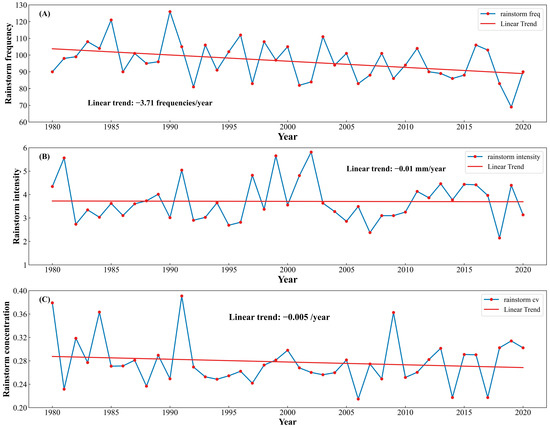 - The H-Plain exhibits a decreasing trend in extreme daily rainfall and an increasing trend in intensity, with the Huaihe River region and the Shandong Peninsula being the highest-incidence areas, where extreme daily rainfall occurs in a more concentrated area and is likely to cause more serious disasters.