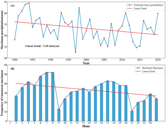 - Li, X.; Zhang, K.; Bao, H.; Zhang, H. Climatology and changes in hourly precipitation extremes over China during 1970–2018. Sci. Total. Environ. 2022, 839, 156297. [Google Scholar] [CrossRef]