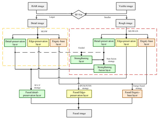 In this paper, an ISAR and VIS fusion method based on AMLSW-GS decomposition is proposed. As shown in Figure 1, the ISAR and VIS images are decomposed using the AMLSW-GS method into layers at different scales. For the multi-scale layers, different fusion strategies are adopted to obtain the fusion results at different scales. Finally, the fusion results at different scales are summed together to yield the final fusion result.