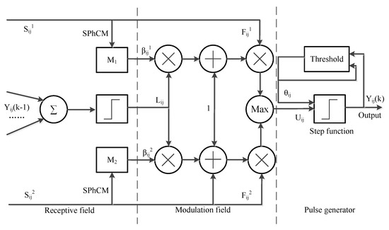 The main fusion framework of SPhCM-PCNN is a two-channel PCNN model. It can be calculated as