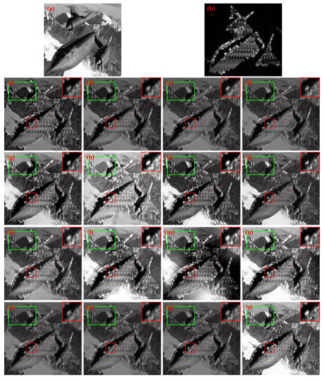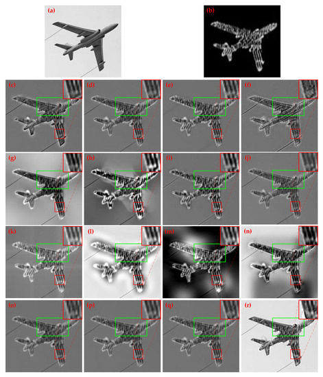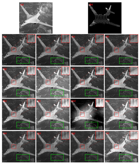 where is the i-th low-frequency information of the side window filter, i = 1, 2, …, n. = I. n is the number of decomposition layers, represents the side window filter [37], r represents the radius of the filter window, and represents the number of iterations. In our experiments, we adopted the recommended values given in [37]: and .