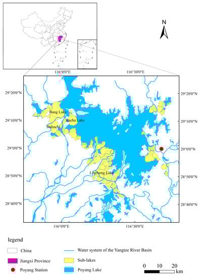 Study area of Poyang Lake and a diagram of the sub-lake.