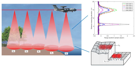 The energy index of this sub-waveform is the backscattered energy obtained after the laser beam shines down on the specified terrain. Then, with the movement of the airborne platform, the backscattered energy of the successive laser beams shining down on the same specified surface will form a complete laser spot. The energy distribution inside the spot can be gradually calculated, just as in computerized tomography.