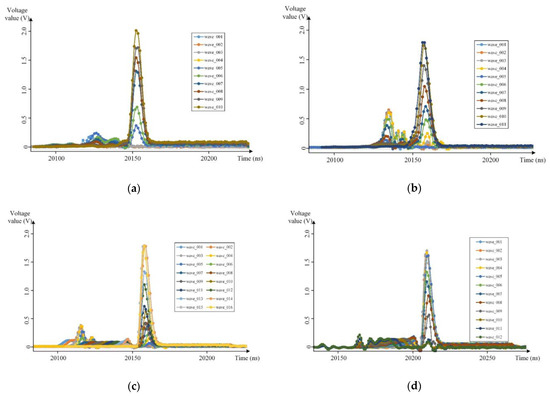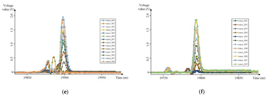 The waveforms of the above six groups of experimental areas were screened and preprocessed to obtain the precise location information of the laser footprint spot and intercept the effective signal part of the laser waveform. The laser echo waveform data of the experimental areas are shown in Figure 11.