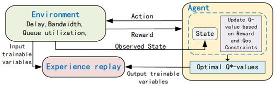 During the process of selecting the next hop, the DQN network learned from the experiences gained through each interaction with the environment. Specifically, the agent stored these experiences in a replay memory buffer and used them for training the Q network. The experiences included the current state s, the chosen action a, the reward r received from the environment, and the resulting next state .