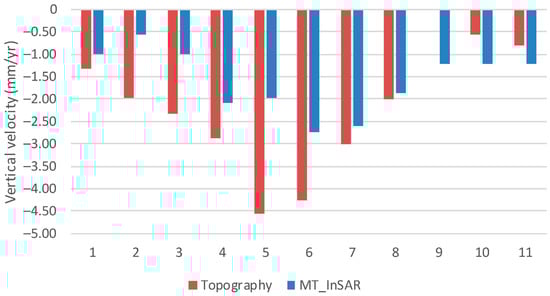 MT-InSAR measured velocities, due to their statistical nature, are not affected by peaks and outlier measures, providing a close approximation to the real trend of the dam’s behavior. Nevertheless, it constitutes an outstanding addition to a comprehensive monitoring system that ought to encompass the following constituents: (1) flow control through dam, (2) settlement tubes, (3) piezometers, and (4) long-term topographic control (preferably via 26evelling). Accurate 26evelling can adjust MT-InSAR measurements with low root mean square errors (RMSEs), achieving a difference of 2 mm/year [53].
