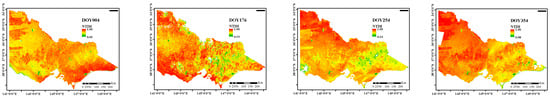 4.3. Spatial–Temporal Estimation of Drought Indices from MODIS Images