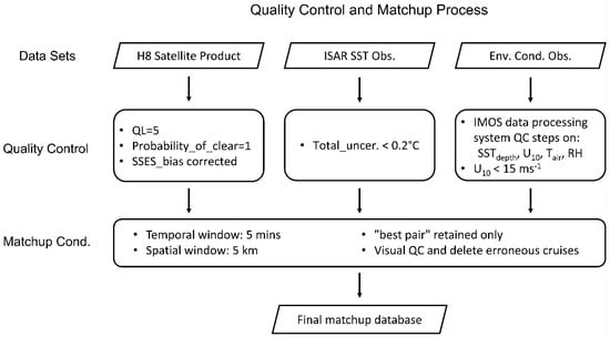The final data set contains 31,871 matchups, including 16,418 during daytime and 15,453 during night-time. A flowchart of the quality control measures on different data sets and the matchup process is shown in Figure 1. For the remainder of the study, all analyses are based on this database unless explicitly stated otherwise, and no wind speed filter is applied.