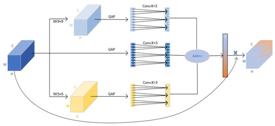 where is channel-wise global average pooling (GAP) and σ is a Sigmoid function; represents the convolution operation with convolution kernel size K.