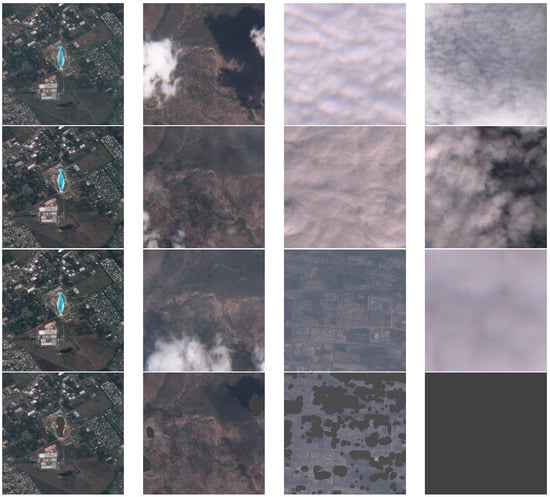 - Sarukkai, V.; Jain, A.; Uzkent, B.; Ermon, S. Cloud removal in satellite images using spatiotemporal generative networks. In Proceedings of the 2020 IEEE Winter Conference on Applications of Computer Vision (WACV), Snowmass, CO, USA, 1–5 March 2020; pp. 1785–1794. [Google Scholar]