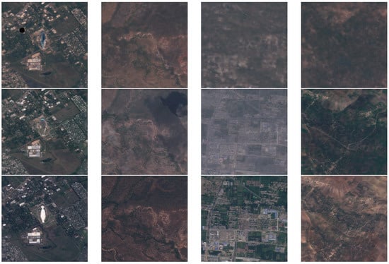 - Oehmcke, S.; Chen, T.H.K.; Prishchepov, A.V.; Gieseke, F. Creating cloud-free satellite imagery from image time series with deep learning. In Proceedings of the 9th ACM SIGSPATIAL International Workshop on Analytics for Big Geospatial Data, Seattle, WA, USA, 3 November 2020; pp. 1–10. [Google Scholar]