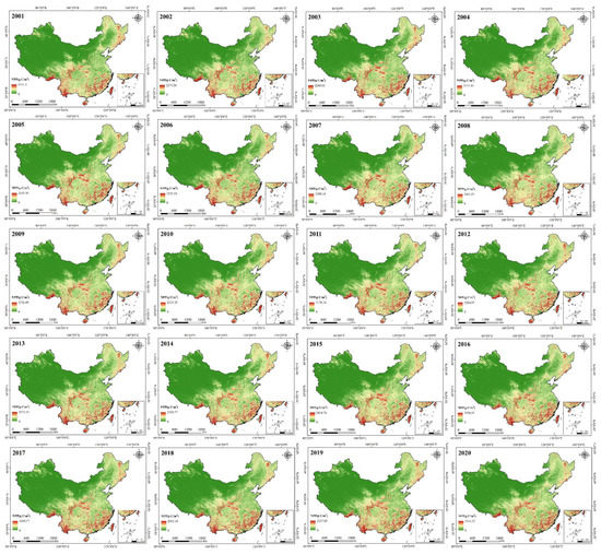 NPP of vegetation in terrestrial ecosystems in China, 2001–2020.