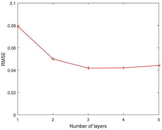 RMSE results of proposed -RDNMF with different settings of the number of layers.
