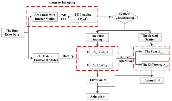 The structure of this paper is organized as follows. In Section 2, echo models with integer and fractional order are built. In Section 3, the imaging flow is given for different types of scatterers, and the resolution of the azimuth and elevation are also discussed. In Section 4, numerous simulations are carried out. Finally, in Section 5, conclusions are drawn.
