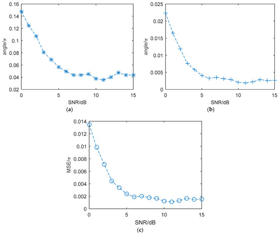 It can be found that the value of will increase as the SNR decreases from Equation (38). It also leads to a decrease in the algorithm’s reconstruction accuracy as the SNR decreases.