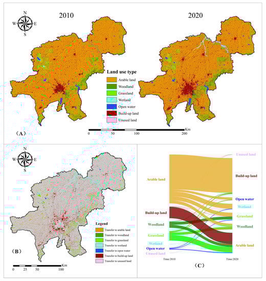 | Land Use Type | Arable Land | Woodland | Grassland | Wetland | Open Water | Built-Up Land | Unused Land |