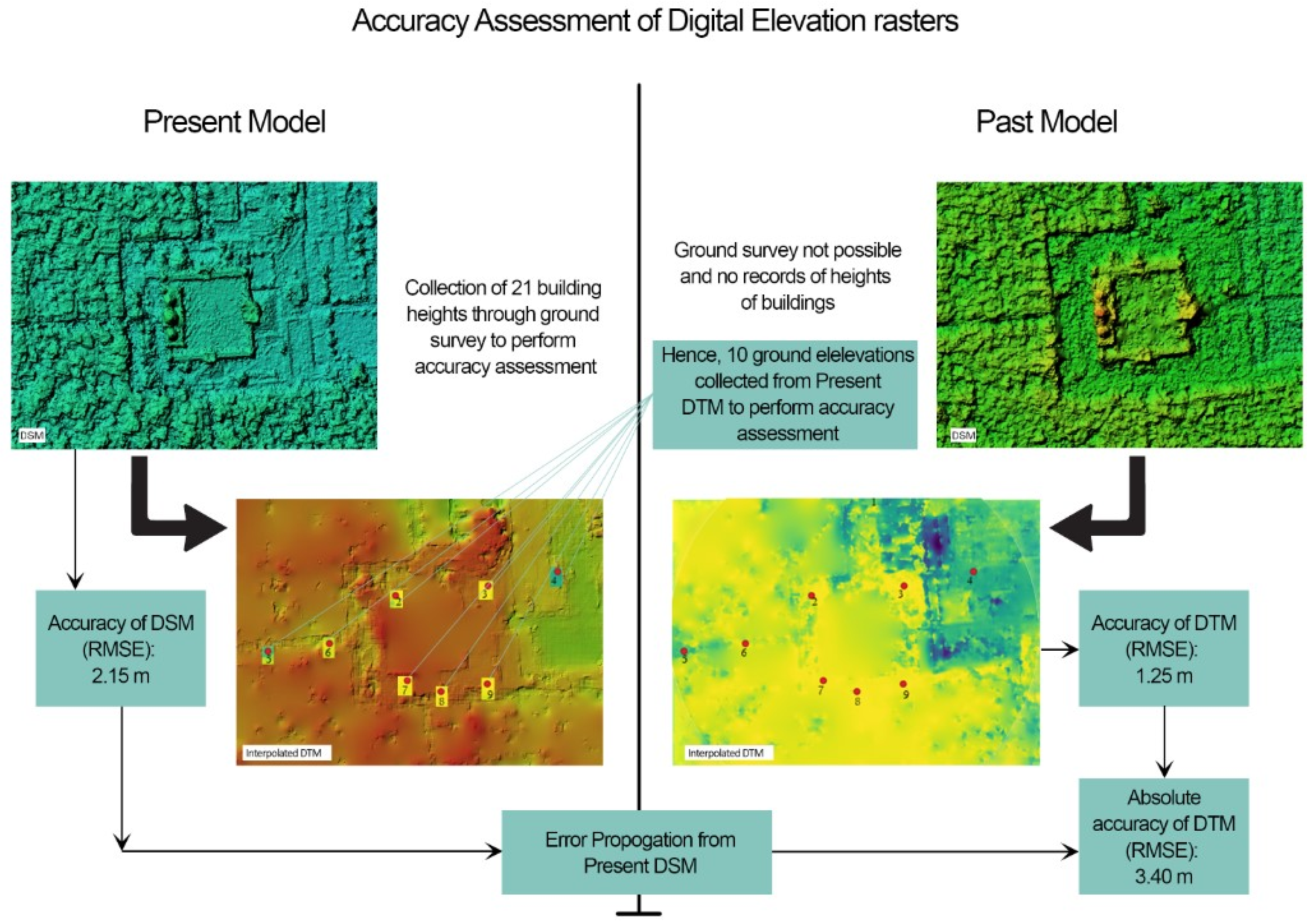 | RMSE | 1.25 + 2.15 (present DTM) = 3.40 m |