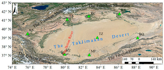 Spatial distribution of the RAOB stations in and around the Taklimakan Desert.