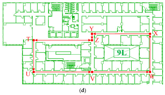 Multi-floor contained real-world indoor environment. (a) 6th Floor. (b) 7th Floor. (c) 8th Floor. (d) 9th Floor.