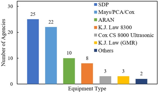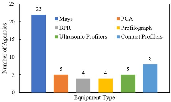 The 2019 and 2022 syntheses [2,26] reported that virtually all agencies were collecting roughness data for the entire network on a yearly basis. Furthermore, IRI continued to be used as a standardized measure of pavement roughness in North America [2,26]. The increase in the popularity of pavement roughness data collection has primarily been fueled by Federal regulations [23 CFR 490 National Performance Management Measures (PM2)] [38]. The PM2 requires state highway agencies in the USA to collect and report IRI, rutting, faulting, and crack percentage for the Interstate Highway System and the Non-Interstate National Highway System [38]. The PM2 requires reporting pavement condition data every one and two years for the interstate and non-interstate national highway system (NHS) systems, respectively.