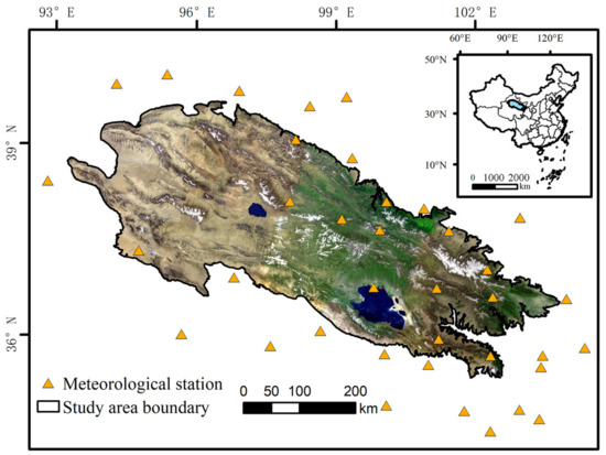 - Jia, W. Temporal and spatial change of climate extremes in Qilian Mountains and Hexi Corridor during last fifty years. Arid Land Geogr. 2012, 35, 559–567. (In Chinese) [Google Scholar] [CrossRef]