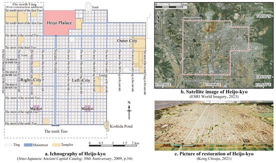 - Wei, Z. A Study on the Spatial Form and Migration Process of the Nara Era Capital in Japan. Ph.D. Thesis, Northeast Normal University, Changchun, China, 2022. [Google Scholar]