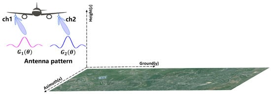 Assuming that there are two data receiving channels, ch1 and ch2, the corresponding equivalent antenna patterns are and . According to the radar equation [],