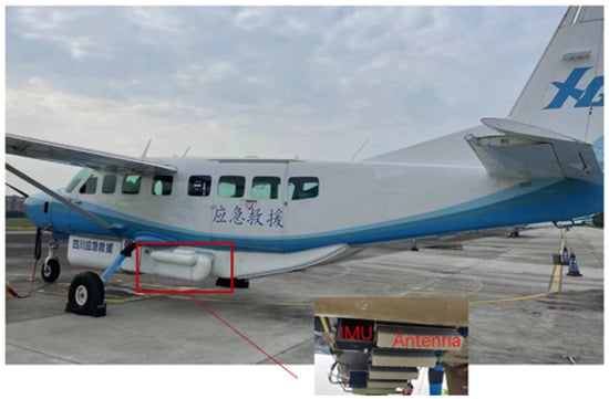 The experiment adopts the airborne array TomoSAR system developed by the Aerospace Information Research Institute, Chinese Academy of Sciences (AIRAS) []. The system structure is shown in Figure 5. The array antenna and IMU are installed on the belly. In order to reduce the influence of aircraft vibration, the antenna is connected by a rigid structure. Additionally, the position of the multi-channel phase center is shown in Figure 6. The baseline lengths between ch1 and ch2 and between ch6 and ch7 are about twice those of other adjacent channels.