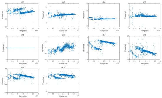 The phase inconsistency information is extracted by the maximum interference spectrum method mentioned above. The results of ch1∼ch10 are shown in the Figure 10. It can be seen that due to the large errors, the phase inconsistency results have an obvious phase ambiguity phenomenon.