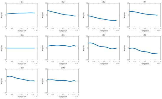 It can be seen from the results that the amplitude inconsistency curve of each channel is quite different, and that the maximum difference at each different range bin is about 5 db. The phase inconsistency curve is generally similar to a power function, which meets with the theoretical situation. After fitting the amplitude-phase inconsistency curve of each channel, the multi-channel amplitude-phase compensation of the SLC data is performed according to the curve fitting results. Then, the spatially varying multi-channel amplitude-phase inconsistency errors calibration can be completed.